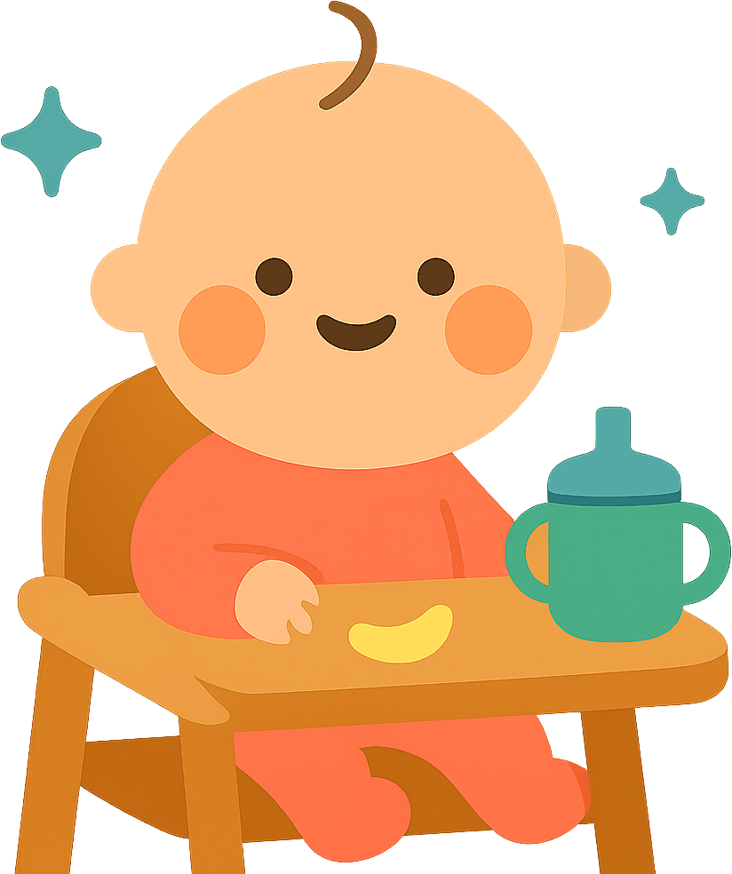 Die Position zählt mehr als die Aktion. Halte das Baby aufrecht und nach vorne gerichtet im Hochstuhl oder auf deinem Schoß. Nicht nach hinten neigen, nicht umdrehen, keinen Finger einhaken.